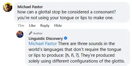 A follower asked why some languages have so few sounds (as I interpret the question):