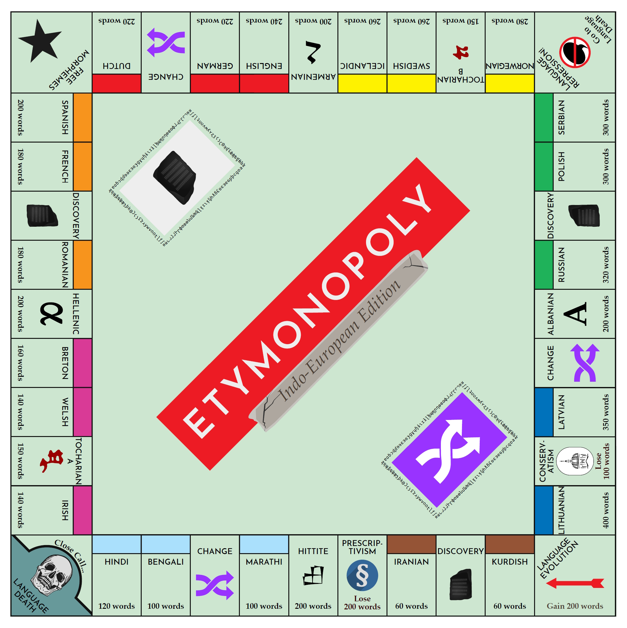 Earlier this year Ryan Starkey of Starkey Comics put together an etymology version of the board game Monopoly—Etymonopoly! You can get all the downloadable printouts here: