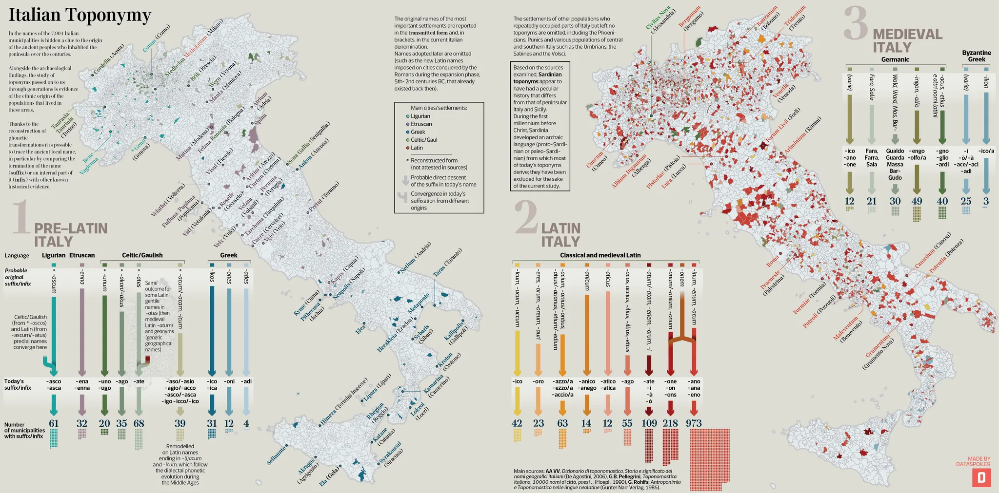 I’ll kick off this week’s digest with another stunning infographic from Marco Giannini of Dataspoiler, about Italian place names (toponyms):