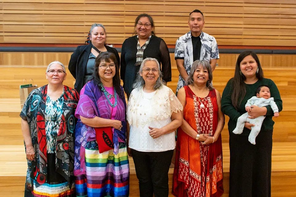 The University of the Fraser Valley graduated its first cohort of 8 students from its Halkomelem language program. Halkomelem /hɒlkəˈmeɪləm/ is a language spoken on the coast of British Columbia, Canada which is part of the Salishan language family. Within the language itself, the name for the language varies depending on the dialect: Halq̓eméylem in the Upriver dialect, Hul̓q̓umín̓um̓ in the Island dialect, and hən̓q̓əmin̓əm̓ in the Downriver dialect.