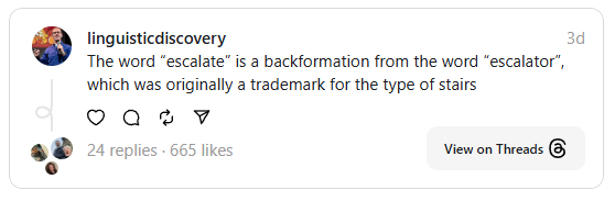 Fun fact: The word escalate is a backformation from the word escalator, which was originally a trademark for the type of moving stairs.