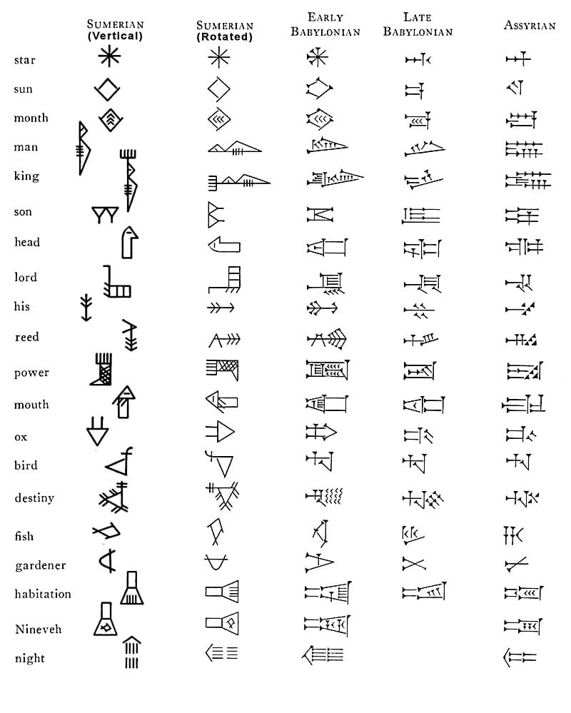 Egyptian hieroglyphs, on the other hand, appear fairly suddenly in the archaeological record. There were also robust trade routes between Egypt and Mesopotamia which could have brought the tradition of writing to Egypt. Did Egyptian hieroglyphs derive from Sumerian cuneiform then? Scholars don’t actually know, because the situation is complex:
