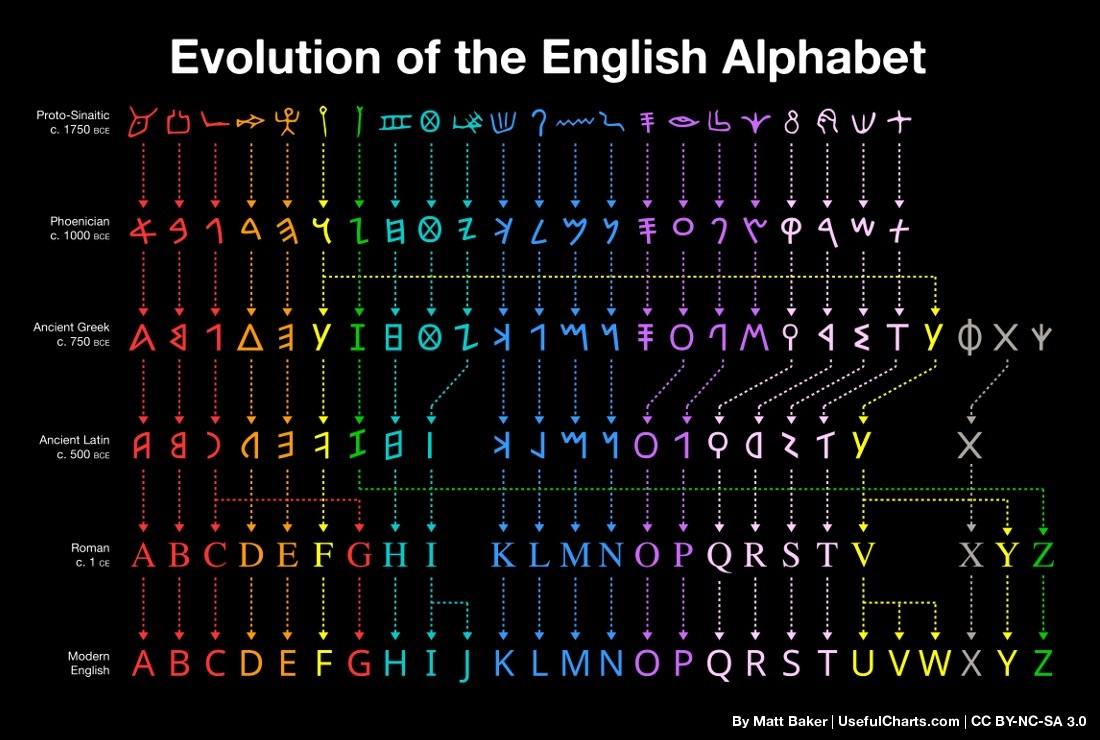 It’s true that most of the world’s writing systems derive from one of these three scripts. For example, the Latin alphabet, the Arabic abjad, the Hebrew alphabet, the Devanagari abugida (used for most languages in India), the other Brahmic scripts (including those in the Pacific), and the Greek and Cyrillic alphabets did all derive from the Phoenician alphabet, which itself derives from Egyptian hieroglyphs.