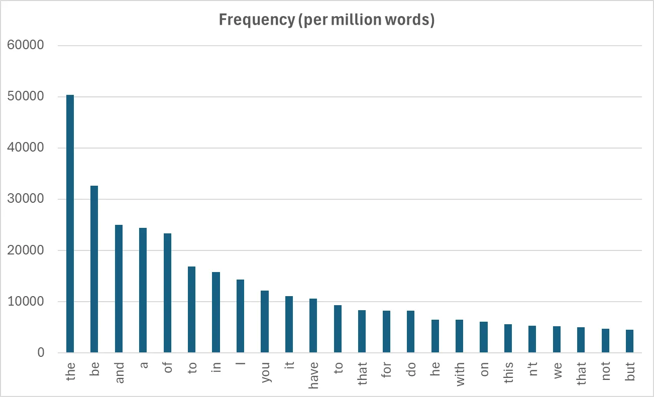 There’s good reason to suspect the former. The most frequent words from the Oxford English Corpus (OEC) and Corpus of Contemporary American English (COCA), are listed below. (These rankings are roughly the same for other dialects of English too.)