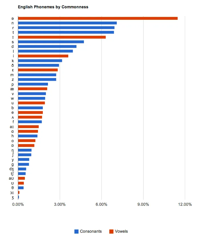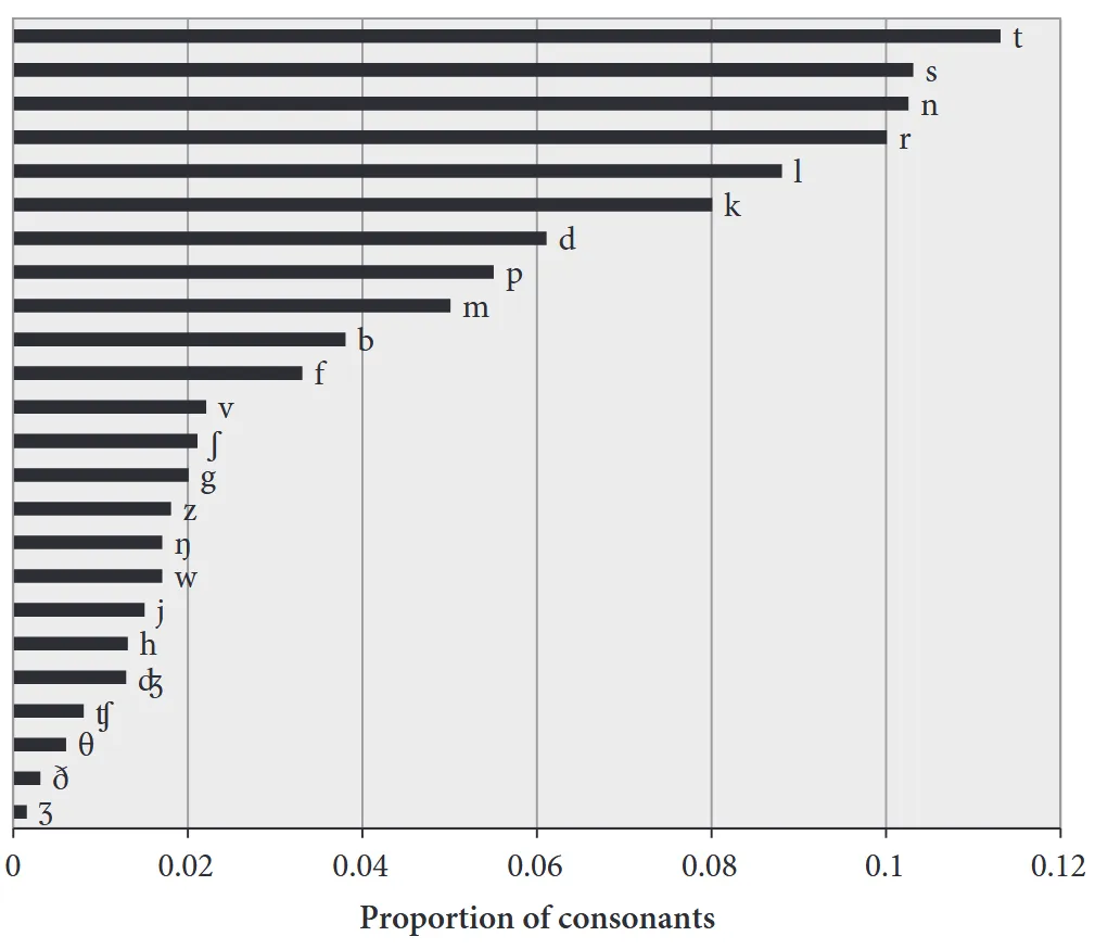 - Blumeyer, Doug. 2012. Relative frequencies of English phonemes. Cmloegcmluin. https://cmloegcmluin.wordpress.com/2012/11/10/relative-frequencies-of-english-phonemes/.