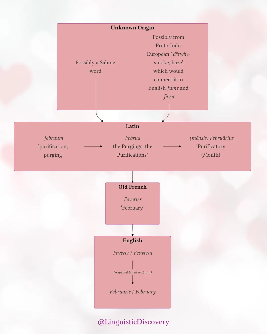 However, February is one of those words which underwent etymological respelling, where scholars during the Renaissance changed the spelling of the word to match its original Classical Latin or Greek spelling, even though the word was no longer pronounced that way. If you’ve been following the newsletter for a while, you might have read about another case of etymological respelling as well—herb!