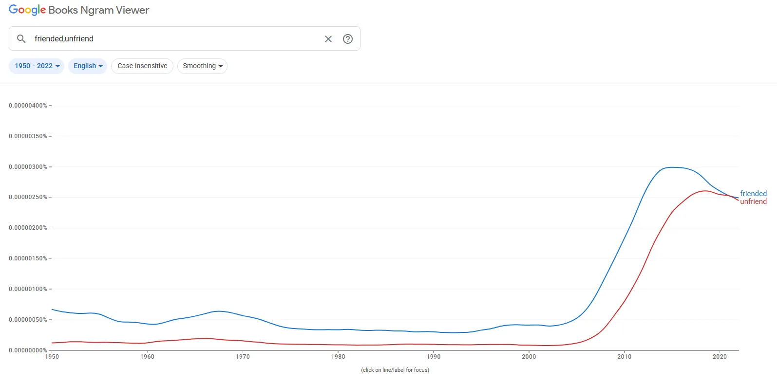 Another example is the verb to friend. Prior to the mid-00’s, friend did not have a canonical usage as a verb. The verb form of the word was befriend. But the advent of social media changed that, so that friend could mean specifically ‘add someone to one’s social media network’—a distinct meaning from befriend.
