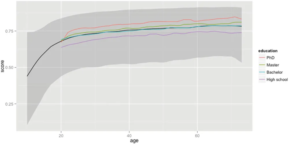 Figure 6. Estimates of the lemmas (words) known by 20-year-olds and 60-year-olds (Brysbaert et al. 2016)